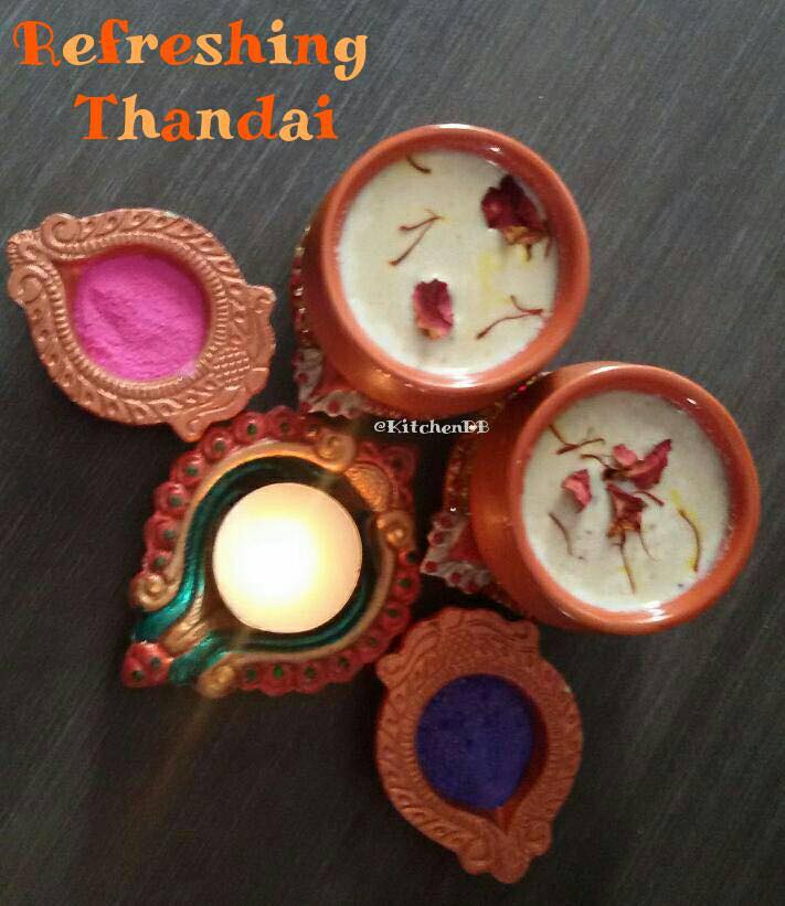 A refreshing drink that is made during Holi and is very flavorful and rich. It is made with Nuts, Poppy Seeds, Fennel, Rose Petals and Milk. The Thandai Masala can be made and stored in air tight container for a week in refrigerator. It can be mixed with boiled and cooled milk, with sugar when needed and serve chilled.