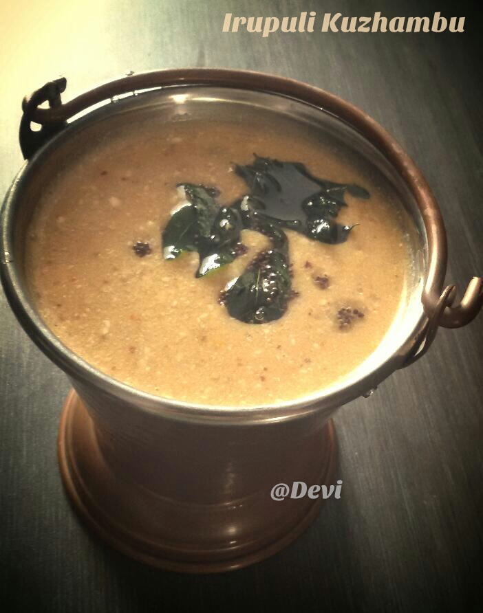 This Irupuli Kuzhambu is made in different ways, a combination of two sour agents among Tamarind, Sour Curd and Mango. Any two will be combined to make this, as it has two souring agents it got this name. The Methi Seeds gives a unique aroma to this Kuzhambu. Its paired with Kali Kindina Dosa which is another favourite dish of mine, which also I happened to revive after going through the post of the cooking legend Chithra Viswanathan amma (Chitvish).Â