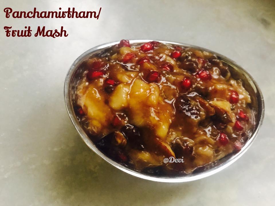 Happiness is harvesting your own banana and make Panchamirtham out of it. Sharing our good old recipe made with home grown organic Karpooravalli Bananas. This is a Neivedhyam recipe in almost all temples of South India especially in Lord Murugan Temples. I have that evergreen memories of visiting the Big Temple of our small town Orathanad (Pattukkottai District) where I spent most of my childhood, with my mom on Fridays for Rahukala Durga Pooja. The chief priest (Ramani Gurukal) of that temple makes yummy pachamirtham for abhishekam and to distribute it for neivedhyam. He used to add almost all fruits into it like grapes, apple, pineapple, pomegranate along with sweet bananas, raisins, nuts and dates. Pachamirtham abhishekam is always done after Nei (Ghee) abhishekam, so the pachamirtham will have that divine taste of ghee and in fact Pachai Karpooram too, Nostalgic!!!