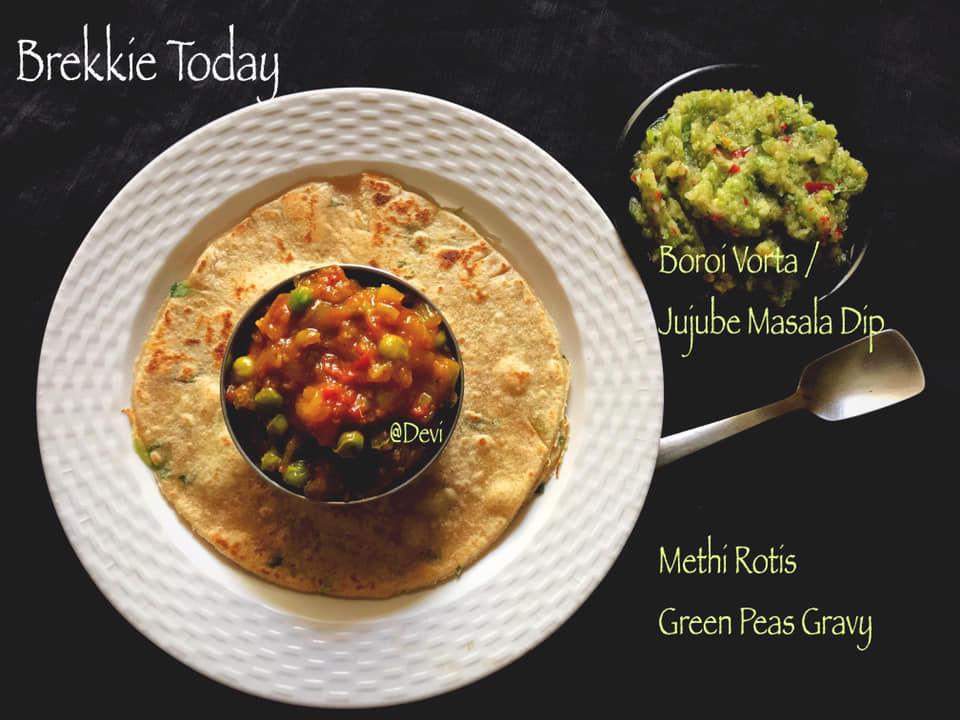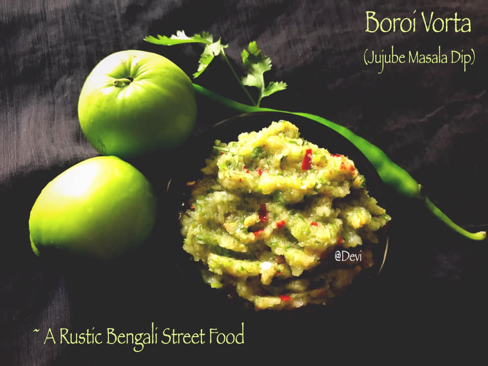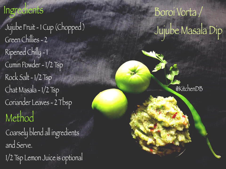 A humble trial of recreating the famous Bengali Street food Boroi Vorta / Jujube Masala Dip when I got some fresh Jujubes. This is one rustic recipe and I just love this to have this as is and I also served this with Rotis. You can serve this with Nachos or any Pita Bread too.