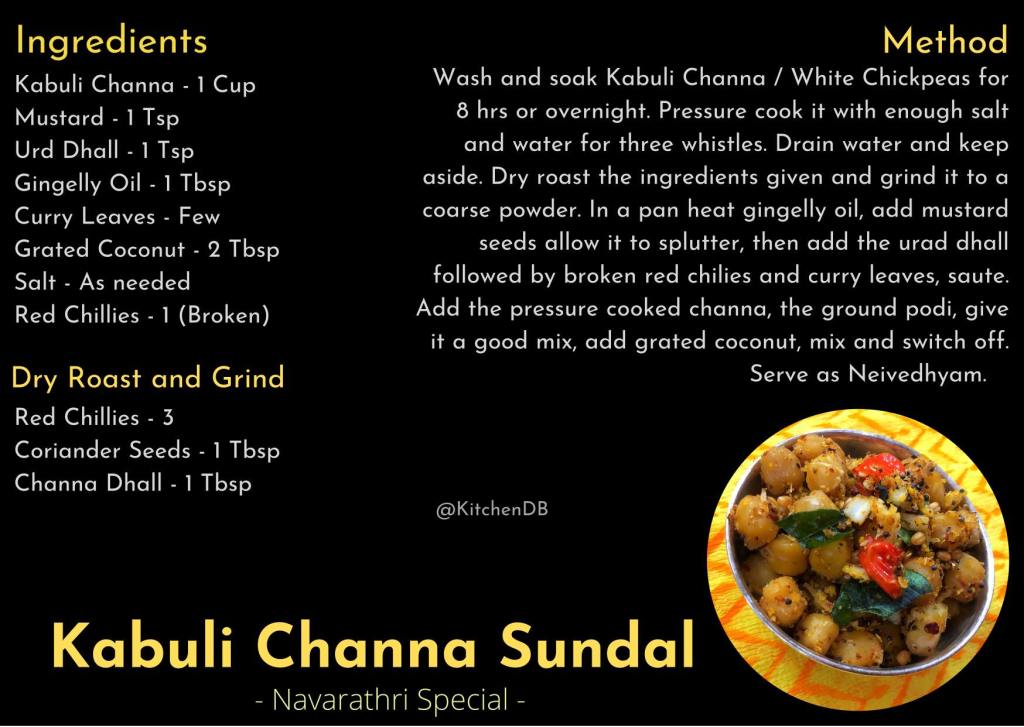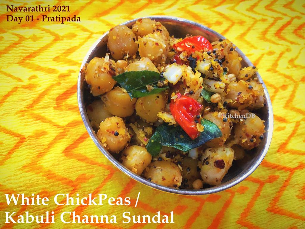 Happy Navarathri dear all 🙂 Navarathri festival means colors, Golu Hopping, Thamboolams and of course the yummy and healthy Sundals that we get as Prasadam at each home. Though making these Sundals every year, I never documented them here. Hence I thought of sharing it in my space here as I am doing a series of Healthy Sundals for MyHarvestFarms Social media pages. Today being Day 01 of this auspicious season, it is White Chickpeas / Kabuli Channa Sundal that is offered as Neivedhyam for Devi Maheshwari. A simple spice mix added to the regular Sundal elevates its taste and flavor to next level.